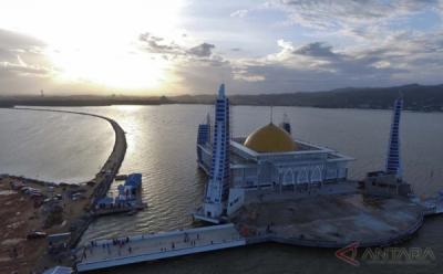 Foto Udara Masjid Al Alam yang Dibangun di Tengah Teluk Kendari