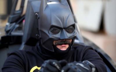 Batman Berkumis Tebal Bagi-Bagi Masker Gratis