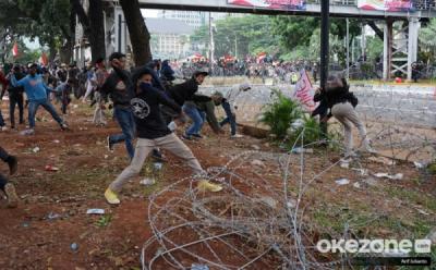Ricuh Demo Tolak UU Cipta Kerja di Kawasan Patung Kuda