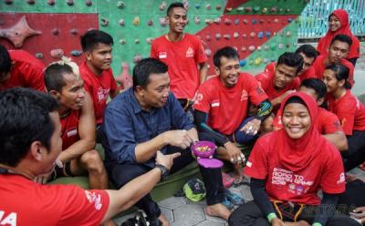 Sembari Lesehan Menpora Makan Bersama Atlet Pelatnas Panjat Tebing