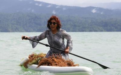 Aksi Menteri Susi Panen Rumput Laut dengan Paddle Board hingga Dicium 2 Bocah Kabupaten Fakfak