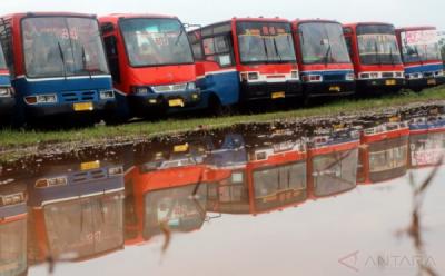 Bangkai Metromini Diselimuti Tanaman Liar di Pool Bus Dinas Perhubungan DKI Jakarta