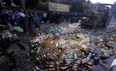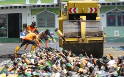 Jelang Ramadan Ribuan Botol Minuman Keras Dimusnahkan