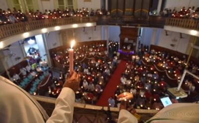 Nyalakan Lilin Misa Malam Natal Gereja Immanuel Jakarta