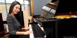Maria Rahajeng Serius Latihan Piano Jelang Miss World