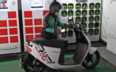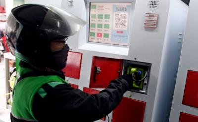 Melihat Proses Penggantian Baterai Motor Listrik Ojek Daring