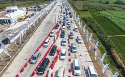Antrean Panjang Kendaraan Pemudik di Jalur Tol Fungsional GT Kertasari