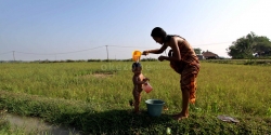 Kekeringan, Warga Mencuci dan Mandi di Irigasi Sawah