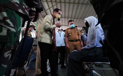 Nadiem Makarim Tinjau Vaksinasi Pelajar di Makorem 042 Garuda Putih Jambi