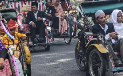 Seratus Pasang Pengantin Diarak Menggunakan Becak