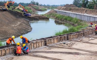 Pemasangan Tulang Besi Proyek Pengendalian Banjir Sistem Sungai Jragung Demak
