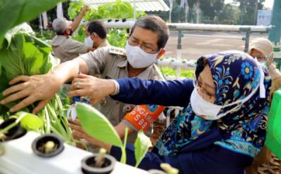 Panen Sayuran Hidroponik di Halaman Kantor Pemkot Jaksel
