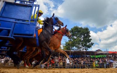 Aksi Pacuan Kuda Gerobak Hibur Warga Gorontalo di Lebaran Ketupat
