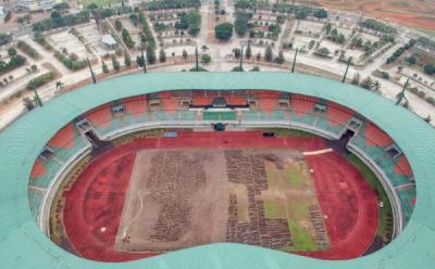 Foto Udara Puluhan Ribu Orang Penuhi Kampanye Ganjar di Stadion Pakansari