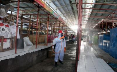 Penyemprotan Disinfektan di Area Pasar Jejeg, Tegal