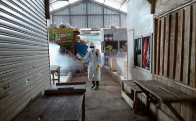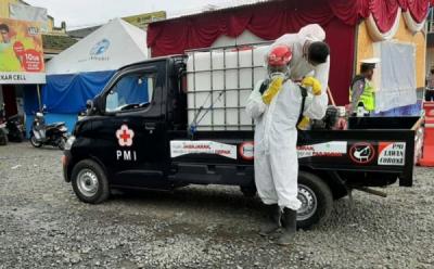 Penyemprotan Disinfektan PMI di Lingkungan Pasar Mandiraja