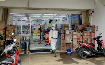 Sejumlah Minimarket di Kalimandi Banjarnegara Disemprot Disinfektan