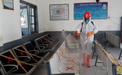 Antisipasi Penyebaran Covid-19, Area Stasiun Slawi Disemprot Disinfektan