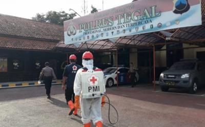 Lingkungan Polres Tegal Disemprot Disinfektan