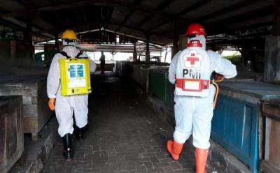 Relawan PMI Semprot Disinfektan di Lingkungan Pasar Jatinegara