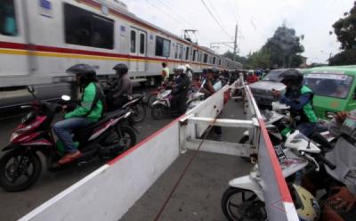 NEKAT! Masih Banyak Pemotor Lewati Palang Pintu Perlintasan KRL