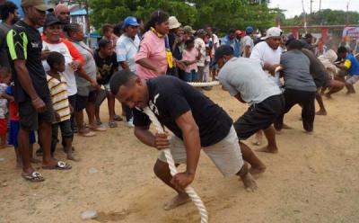 Warga Adu Kuat saat Ikuti Lomba Tarik Tambang di Papua