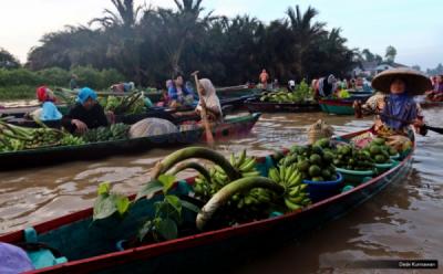 Aktivitas Jual Beli di Pasar Terapung Banjarmasin
