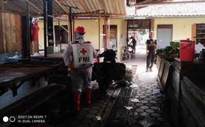 PMI Semprot Disinfektan Pasar Mejasem Tegal
