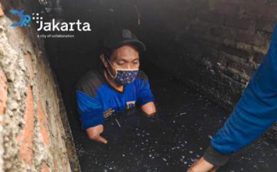 Masuk ke Gorong-Gorong, Pasukan Biru Bersihkan Lumpur di Kawasan Gambir