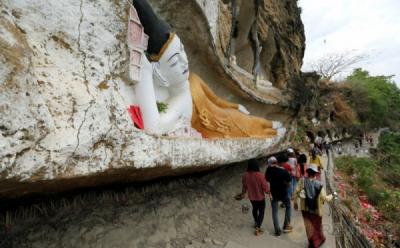 Melihat Lebih Dekat Pahatan Patung Buddha di Tebing Akauk Taung Myanmar