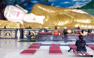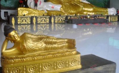 Jelang Hari Waisak, Patung Buddha Tidur Dibersihkan