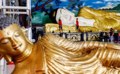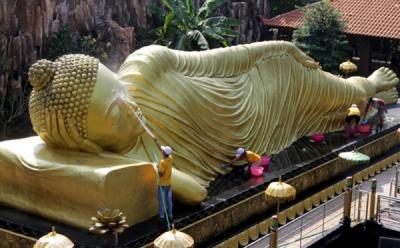 Jelang Imlek, Patung Buddha Tidur Raksasa Dibersihkan