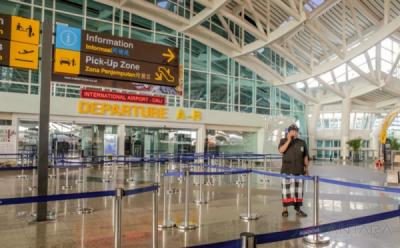Pecalang Berjaga di Bandara I Gusti Ngurah Rai saat Hari Raya Nyepi