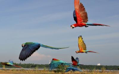 Melihat Cantiknya Burung Macaw Khas Amerika saat Terbang