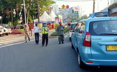 Petugas Gabungan Awasi Pelaksanaan PSBB di Check Point Simpang Senen