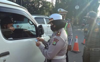 Petugas Gabungan Cek Pelaksanaan PSBB di Check Point Jalan Raya Bogor