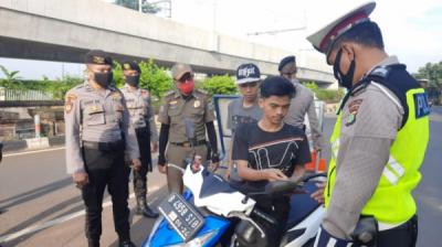 Pemotor Tak Pakai Helm dan Masker di Check Point Budiluhur