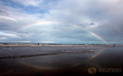 Indahnya Pelangi saat Hiasi Langit Pantai Futuro Brasil