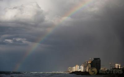 Pelangi Hiasi Langit Laut Mediterania di Tel Aviv Israel