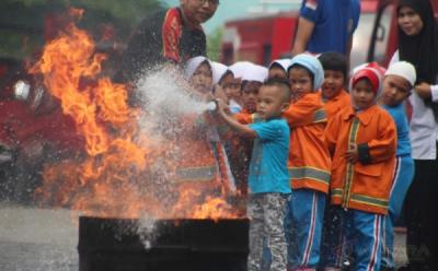 Anak TK di Medan Diajarkan Cara Memadamkan Api
