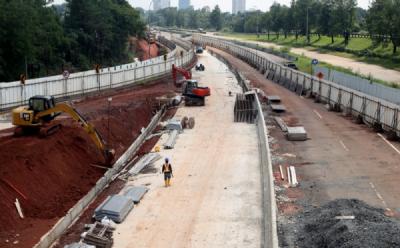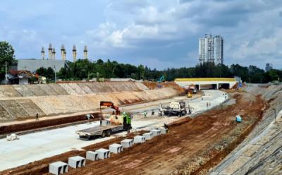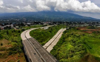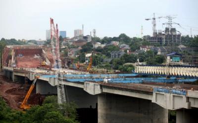 Pekerja Menyelesaikan Proyek Pembangunan Tol Serang-Panimbang