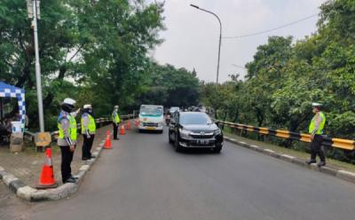 Polisi Periksa Pengendara di Check Point PSBB Jalan Akses UI Depok
