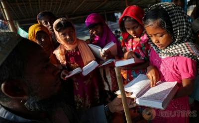 Intip Anak-Anak Pengungsi Rohingya Saat Mengaji di Areal Persawahan di Bangladesh