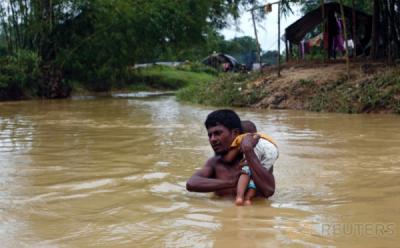 Perjuangan Pengungsi Rohingya Menggendong Bayi Melintasi Sungai