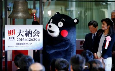 Beruang Ini Tutup Perdagangan Bursa Saham 2016 di Bursa Efek Tokyo