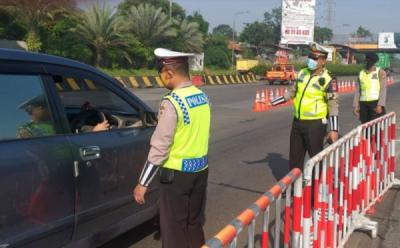 Pengecekan dan Penyekatan Kendaraan di Gerbang Tol Cikupa Tangerang