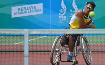 Atlet Tenis Lapangan Kursi Roda Latihan Jelang Peparnas XV Jabar