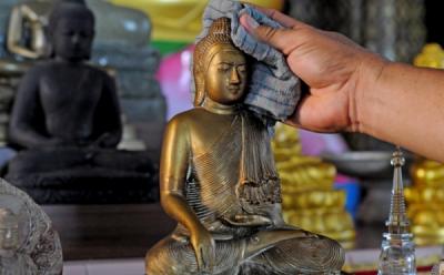 Umat Buddha Bersihkan Patung Jelang Perayaan Waisak di Vihara Jaya Manggala Jambi