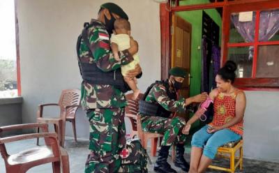 Prajurit Kostrad Beri Pelayanan Kesehatan kepada Ibu dan Anak Kampung Skouw Mabo, Jayapura