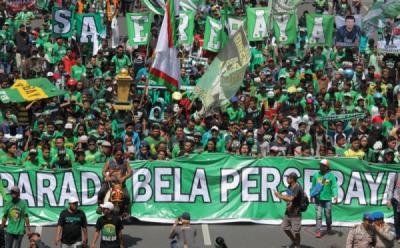 Parade Bela Persebaya, Suporter Ini Naik "Buaya" Hijau